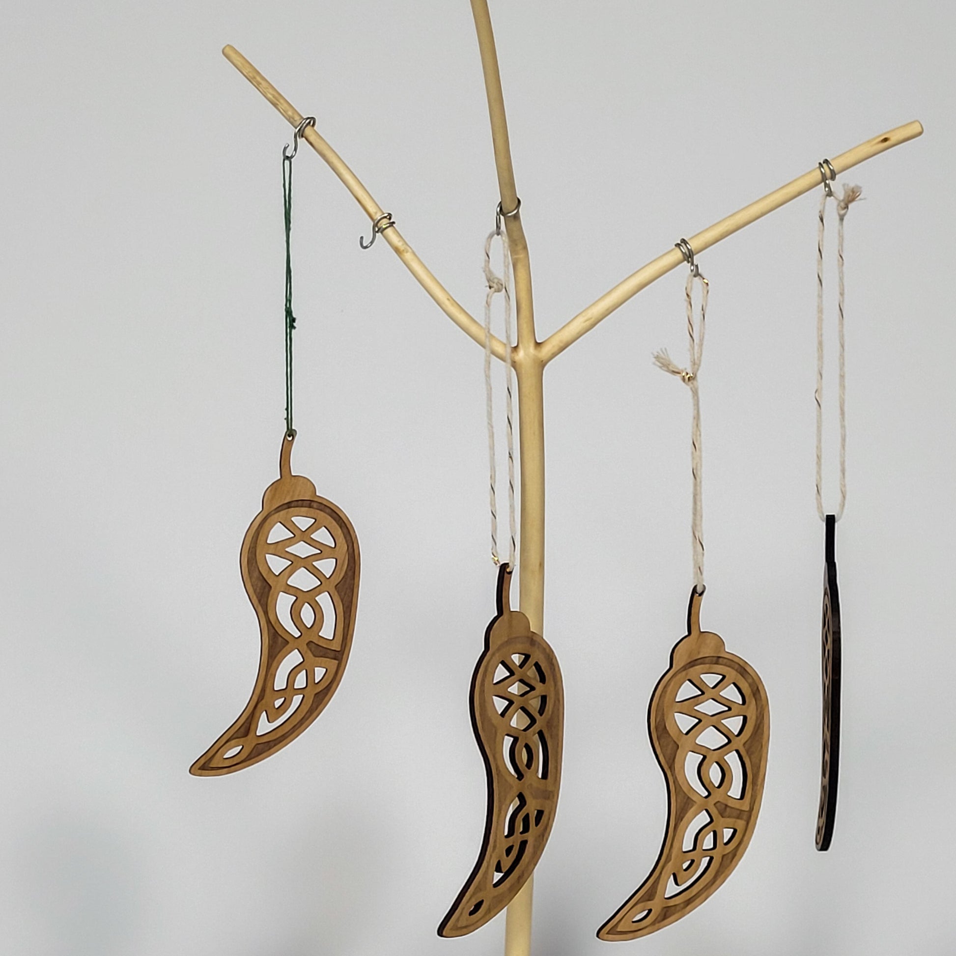 These ornaments are handcrafted by Lowell wood artist Jeff Taylor of JoBeMac Studios, who also created a custom woodcut coaster featuring our signature Craic Sauce Celtic pepper logo. Explore more of his work at JoBeMacStudios.net.