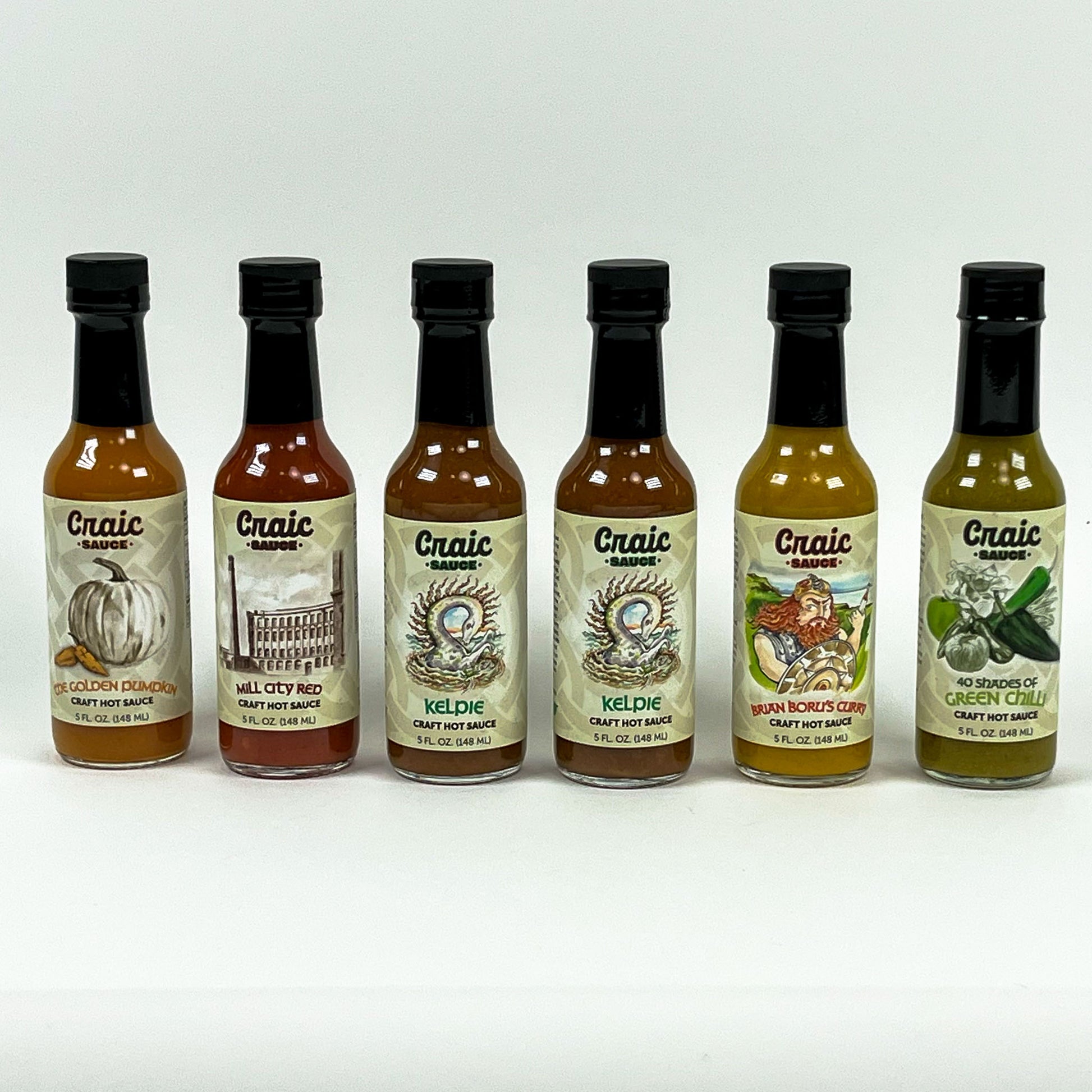 The Craic Sauce complete collection consists of hot sauces that use fermentation and local sourced ingredients to create complex and flavorful sauces.